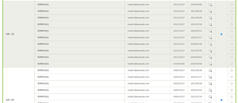 同一氏名の名刺をリストアップし、同一人物である場合には一つのデータにまとめることができます。最新の名刺にデータを統一することが可能です。